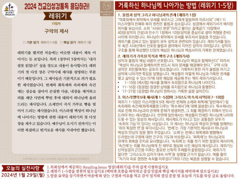 (2024년 1월 29일) 'Reading Jesus 응답하라' 말씀요약과 본문해설 (제19일차)입니다.