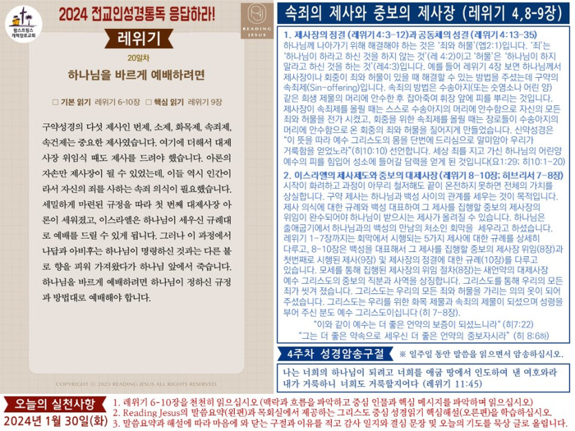 (2024년 1월 30일) 'Reading Jesus 응답하라' 말씀요약과 본문해설 (제20일차) 입니다.