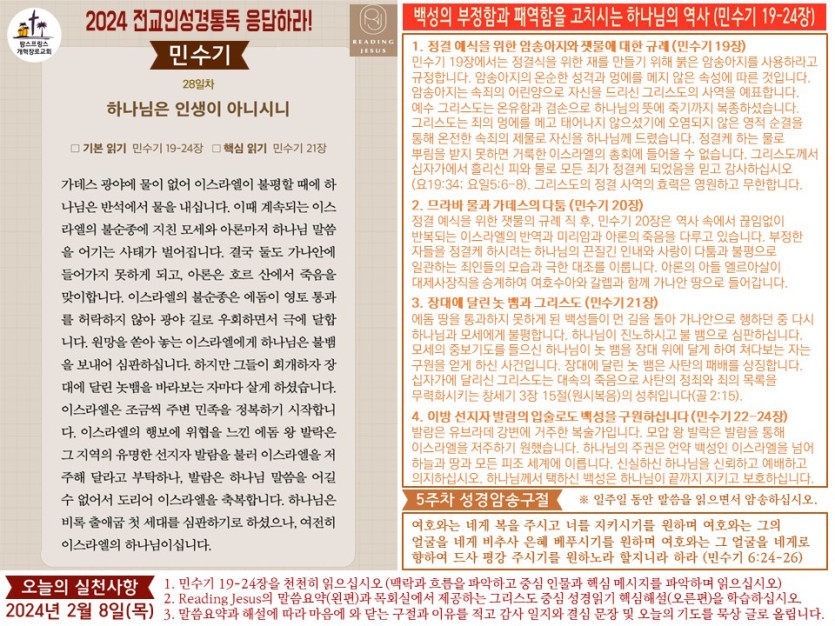 (2024년 2월 8일) 'Reading Jesus 응답하라' 말씀요약과 본문해설 (제28일차) 입니다.