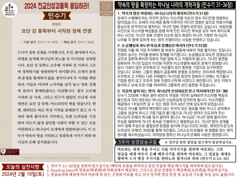(2024년 2월10일) 'Reading Jesus 응답하라' 말씀요약과 본문해설 (제30일차) 입니다.
