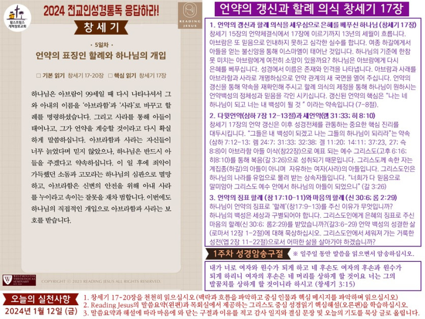 - 다음글(2024년 1월 11일) 'Reading Jesus 응답하라' 말씀요약과 본문해설 (제4일차) 24.01.12
