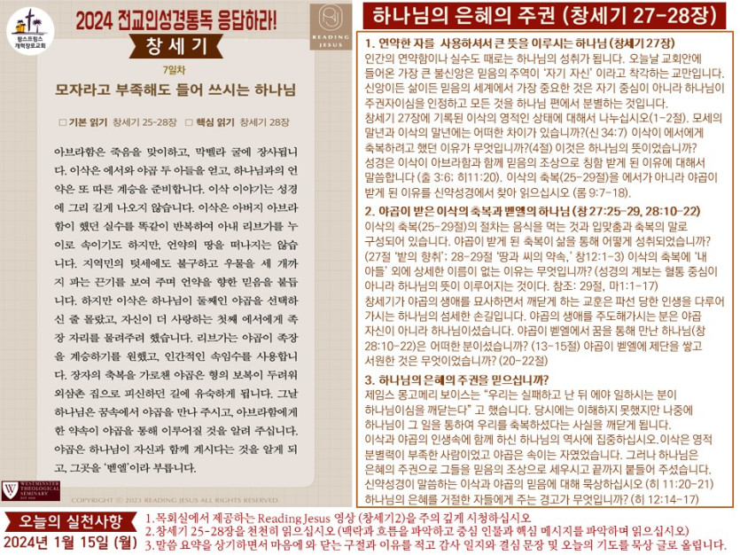 (2024년 1월 15일) 'Reading Jesus 응답하라' 말씀요약과 본문해설 (제7일차)