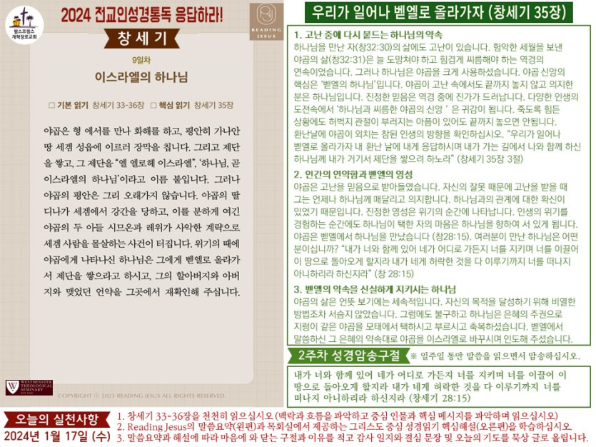 (2024년 1월 17일) 'Reading Jesus 응답하라' 말씀요약과 본문해설 (제9일차)