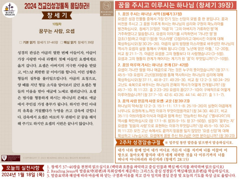 (2024년 1월 18일) 'Reading Jesus 응답하라' 말씀요약과 본문해설 (제10일차)