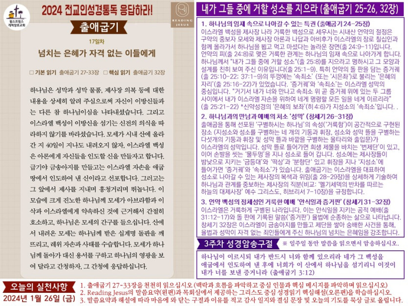 (2024년 1월 26일) 'Reading Jesus 응답하라' 말씀요약과 본문해설 (제17일차)입니다.