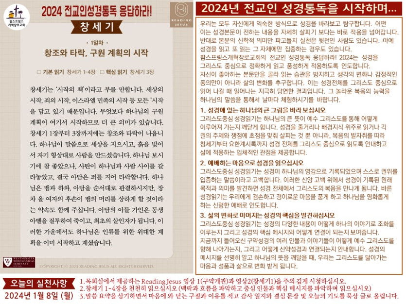 (2024년 1월 8일) 'Reading Jesus 응답하라' 말씀요약과 본문해설 (제1일차)