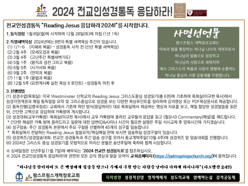 - 이전글(2024년 1월 9일) 'Reading Jesus 응답하라' 말씀요약과 본문해설 (제2일차) 24.01.08