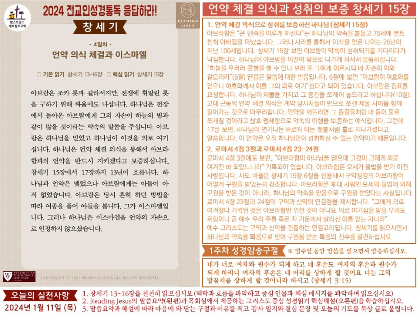 (2024년 1월 11일) 'Reading Jesus 응답하라' 말씀요약과 본문해설 (제4일차) 입니다.