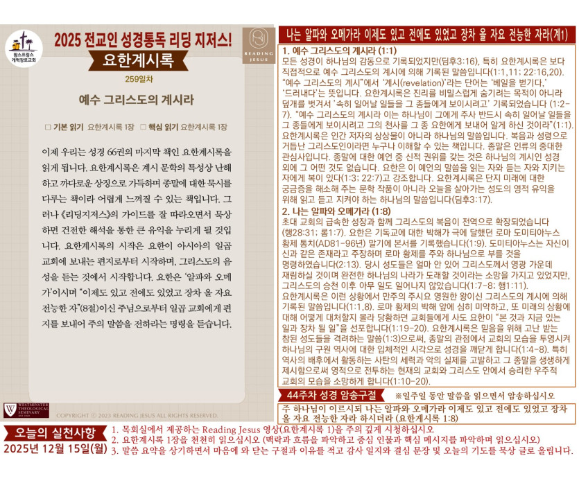 (2025년 12월 15일) '리딩 지저스' 성경읽기 영상과 말씀요약/본문해설 (제259일차)