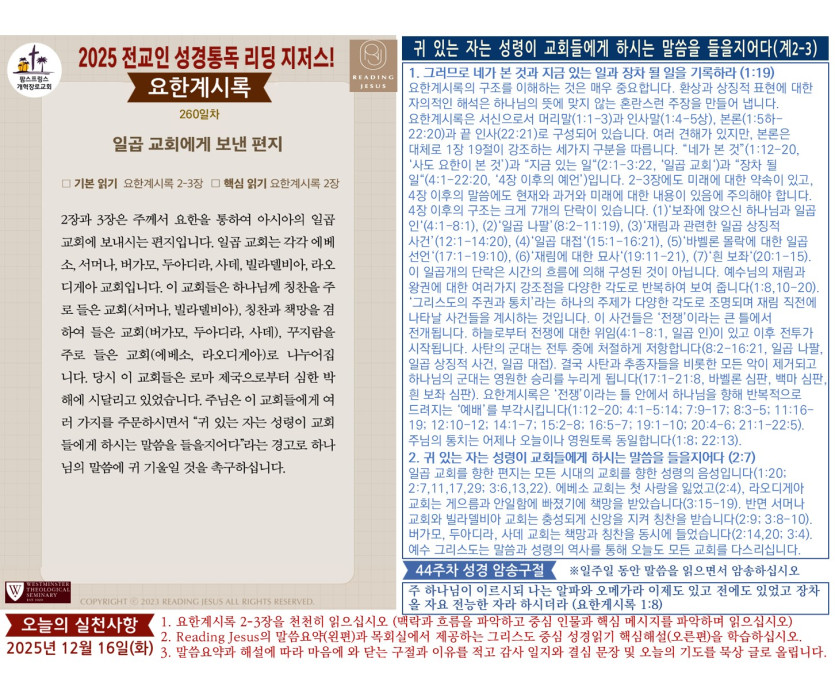 - 이전글(2025년 12월 17일) '리딩 지저스' 성경읽기 영상과 말씀요약/본문해설 (제261일차) 25.12.20