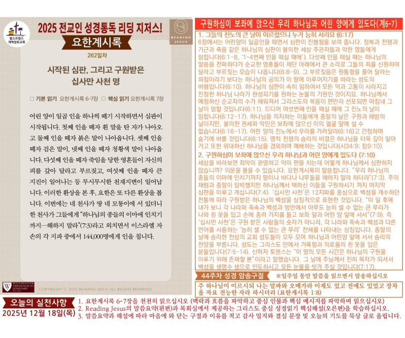 - 다음글(2025년 12월 17일) '리딩 지저스' 성경읽기 영상과 말씀요약/본문해설 (제261일차) 25.12.20