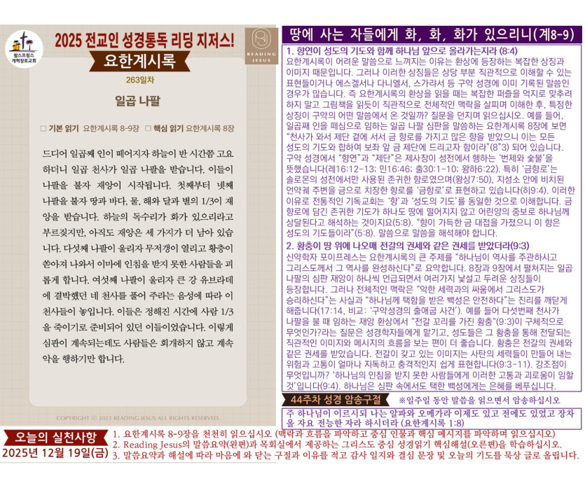 (2025년 12월 19일) '리딩 지저스' 성경읽기 영상과 말씀요약/본문해설 (제263일차)