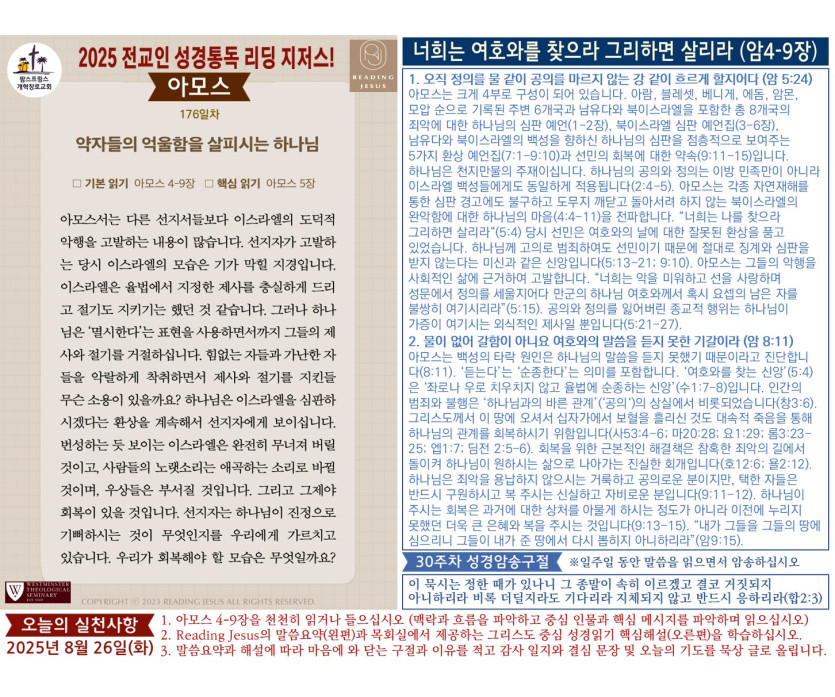 (2025년 8월 26일) '리딩 지저스' 성경읽기 영상과 말씀요약/본문해설 (제176일차)