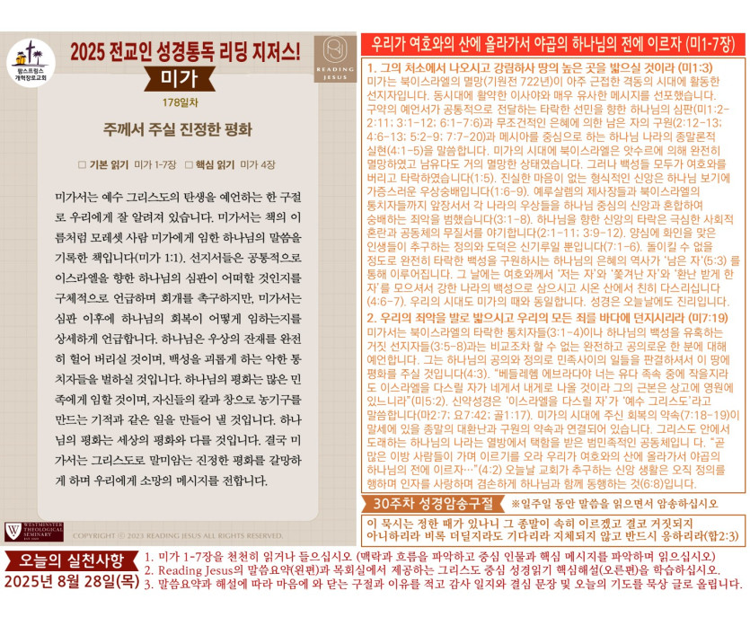 (2025년 8월 28일) '리딩 지저스' 성경읽기 영상과 말씀요약/본문해설 (제178일차)