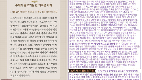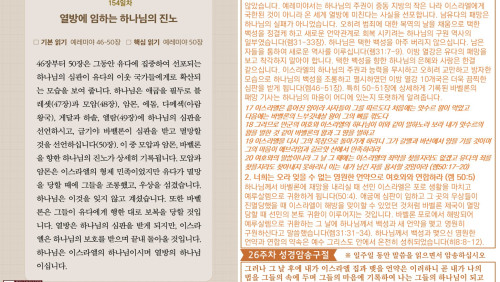 할렐루야! 2025년 전교인성경통독 리딩 지저스 제160일차 말씀은 에스겔 13-16장입니다. 에스겔 13장은 이스라엘 백성을 미혹하는 거짓 선지자들의 실상을 폭로하고 신랄한 저주와 심판을 선포합니다. 하나님의 말씀을 받지 않았으면서도 말씀을 받았다고 거짓 예언을 하는 사람들이 적지 않습니다(13:2-16; 렘23:16-32). 그들은 하나님의 뜻이 아닌 자신의 의도와 생각으로 거짓을 진리를 꾸미는 자들입니다(13:6). 그들은 하나님의 이름을 사칭하여 인간적인 유익을 추구하고 예언을 스스로 지어내기 때문에 백성들을 멸망으로 인도합니다(13:7). 거짓은 진리를 싫어합니다. 거짓 선지자들은 하나님이 보내신 이사야, 예레미야, 에스겔, 다니엘과 같은 참된 선지자들을 대적하였고 백성들이 하나님의 엄중한 뜻을 받아들이지 못하게 만들었던 원수들입니다. 예레미야를 통해 선포하신 70년의 바벨론 포로 생활은 백성의 죄악에 대한 당연한 징계였으며 복역 기간이었습니다. 하나님의 정당한 심판과 회복의 서정을 무시하고 백성의 죄악 된 욕구에 영합하여 예루살렘의 번영과 평강을 약속했던 자(13:16)들에게 반드시 화가 임할 것입니다. 마지막 시대에는 사람들이 자신의 죄악 된 양심을 정당화시켜주는 사사로운 선생들을 많이 두고 바른 교훈을 받지 않습니다(딤후 4:3). 마음은 진리를 분별하고 받아들이는 영적인 ‘눈’이요 ‘귀’입니다. 의인의 마음을 거짓말로 근심하게 하는 타락한 시대의 악한 거짓 선지자들을 분별해야 합니다(13:22-23).
