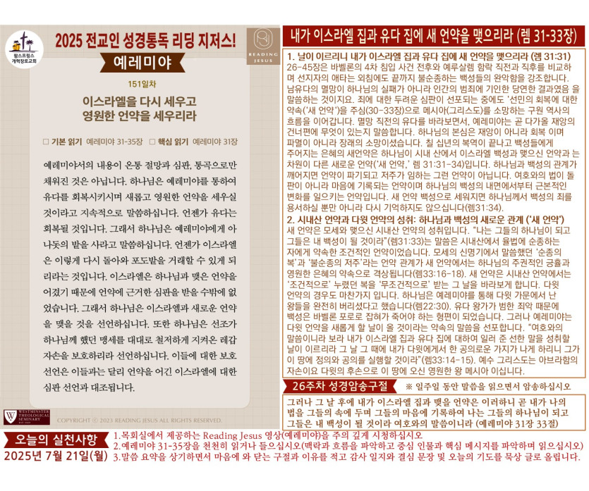 (2025년 7월 21일) '리딩 지저스' 성경읽기 영상과 말씀요약/본문해설 (제151일차)