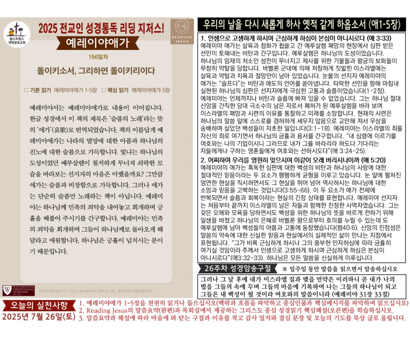 - 다음글(2025년 7월 25일) '리딩 지저스' 성경읽기 영상과 말씀요약/본문해설 (제155일차) 25.07.25