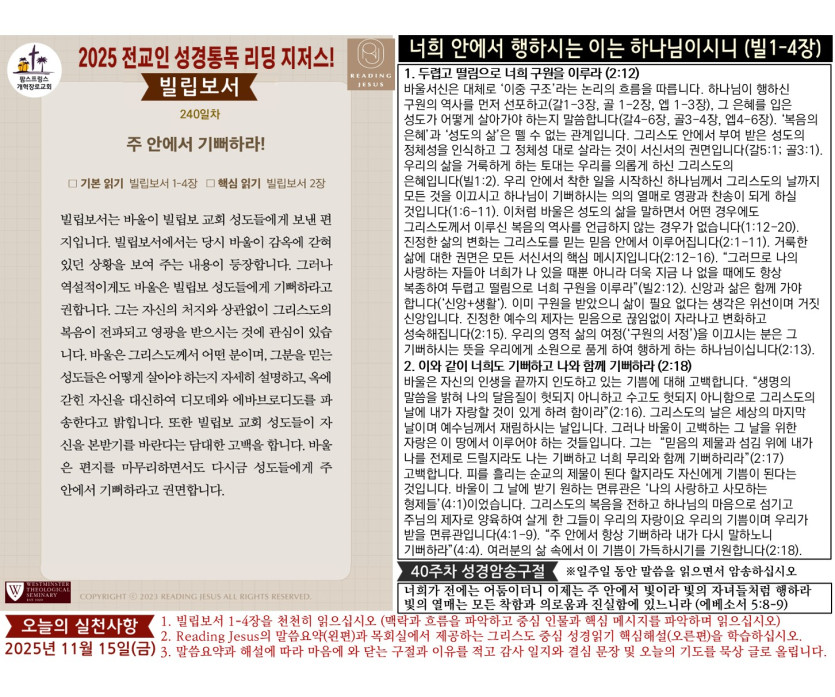 - 다음글(2025년 11월 14일) '리딩 지저스' 성경읽기 영상과 말씀요약/본문해설 (제239일차) 25.11.15