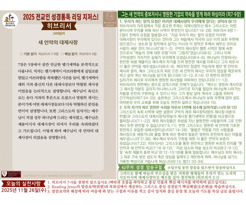 (2025년 11월 26일) '리딩 지저스' 성경읽기 영상과 말씀요약/본문해설 (제249일차)