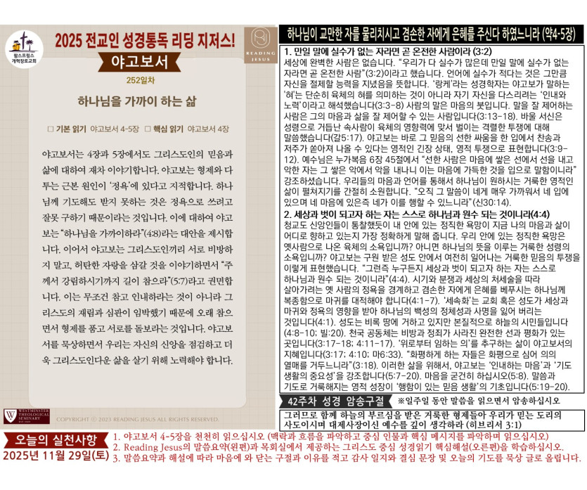 - 다음글(2025년 11월 28일) '리딩 지저스' 성경읽기 영상과 말씀요약/본문해설 (제251일차) 25.11.29